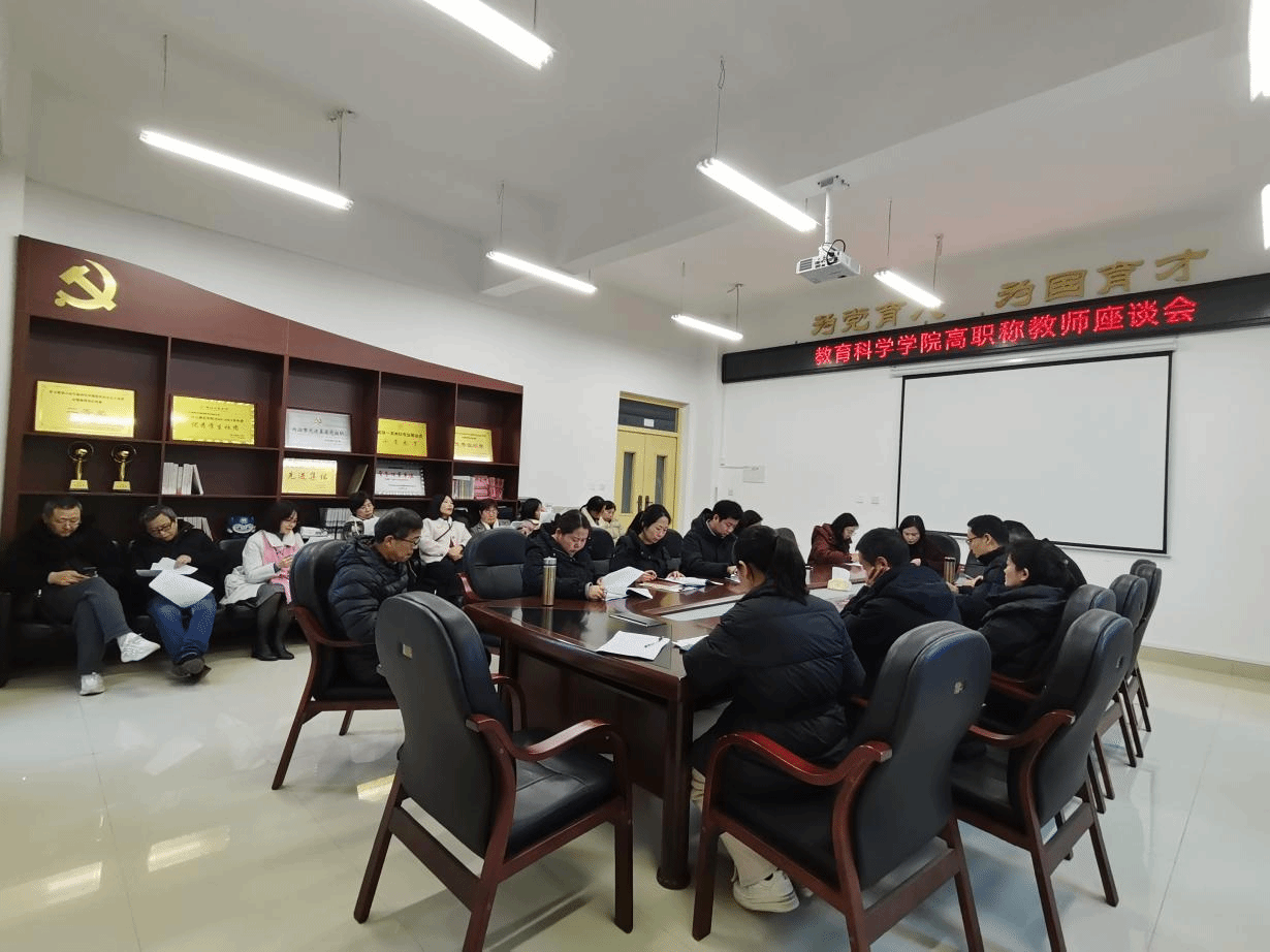 2025年12月22日,教育科学学院在弘文楼205会议室召开高级职称教师座谈会。学院全体领导班子集体参会,与全院高职称教师代表面对面交流,共商学院高质量发展大计。