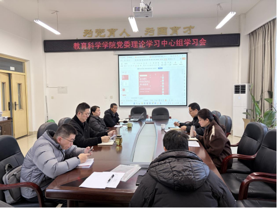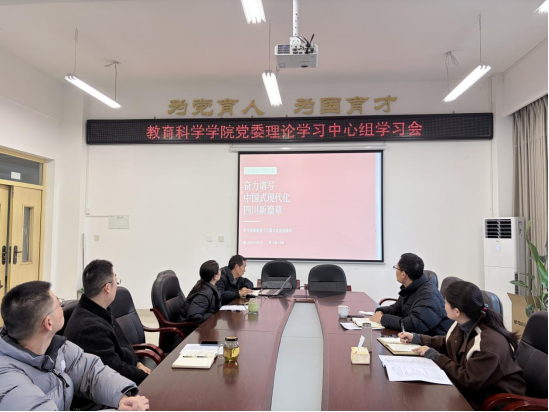12月26日上午,教育科学学院党委在弘文楼205会议室召开理论学习中心组学习会,专题学习中国共产党四川省第十二届委员会第八次全体会议、中国共产党内江市第八届委员会第十一次全体会议和中国共产党内江师范学院委员会第四届委员会第三次全体会议精神。会议由学院党委书记秦国杨主持,学院党委委员参会。
