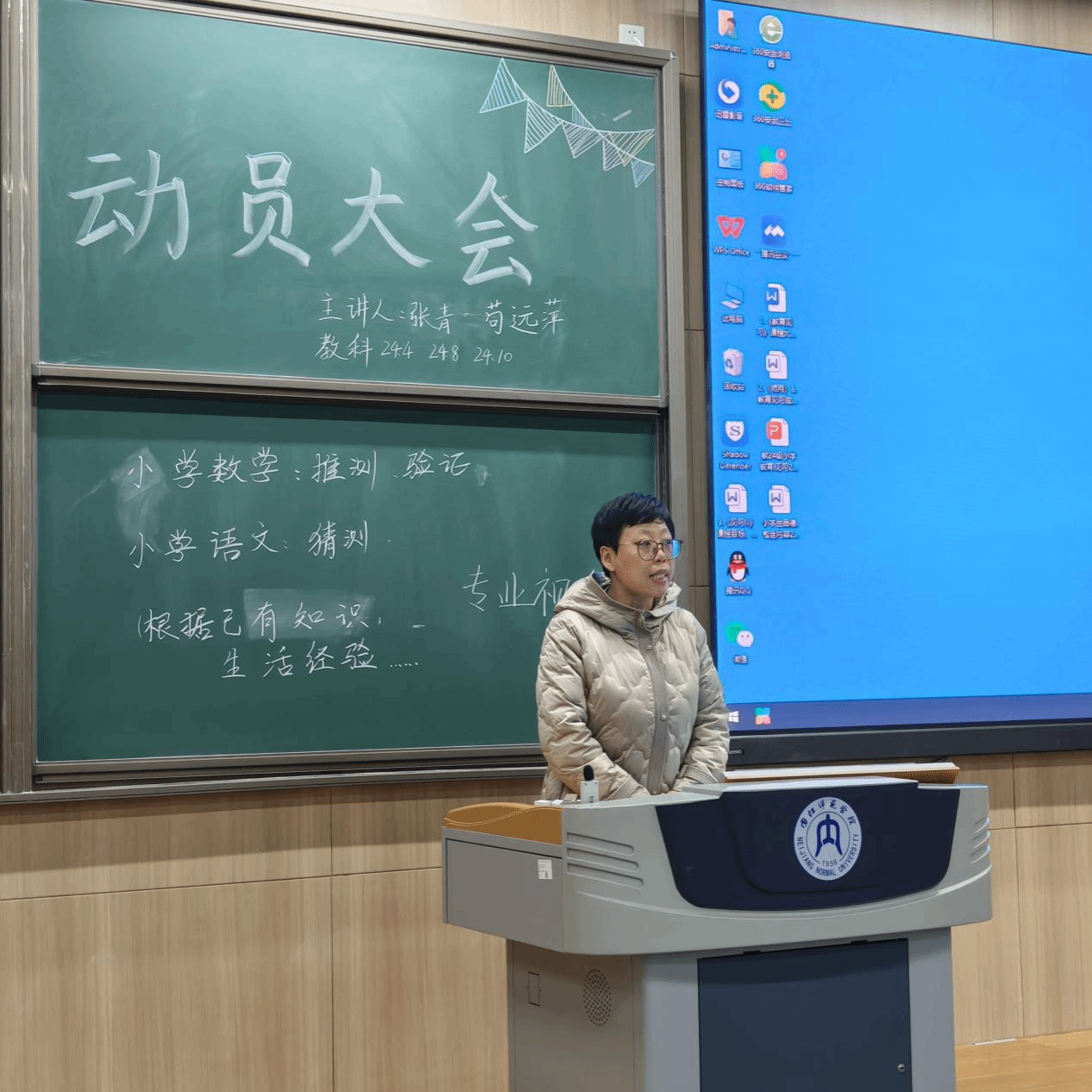 2026年1月3日,我院小学教育专业2024级在明德楼B111举行教育见习Ⅱ动员大会。苟远萍、张青两位老师为93名学生精准解读了人才培养方案中毕业要求与《教育见习2》课程目标的紧密联系,搭建起理论与实践之间的衔接桥梁。