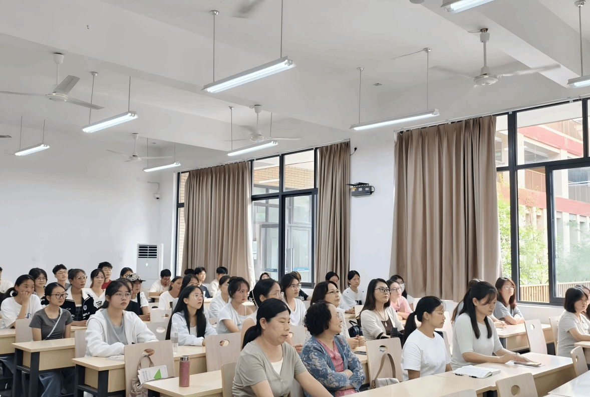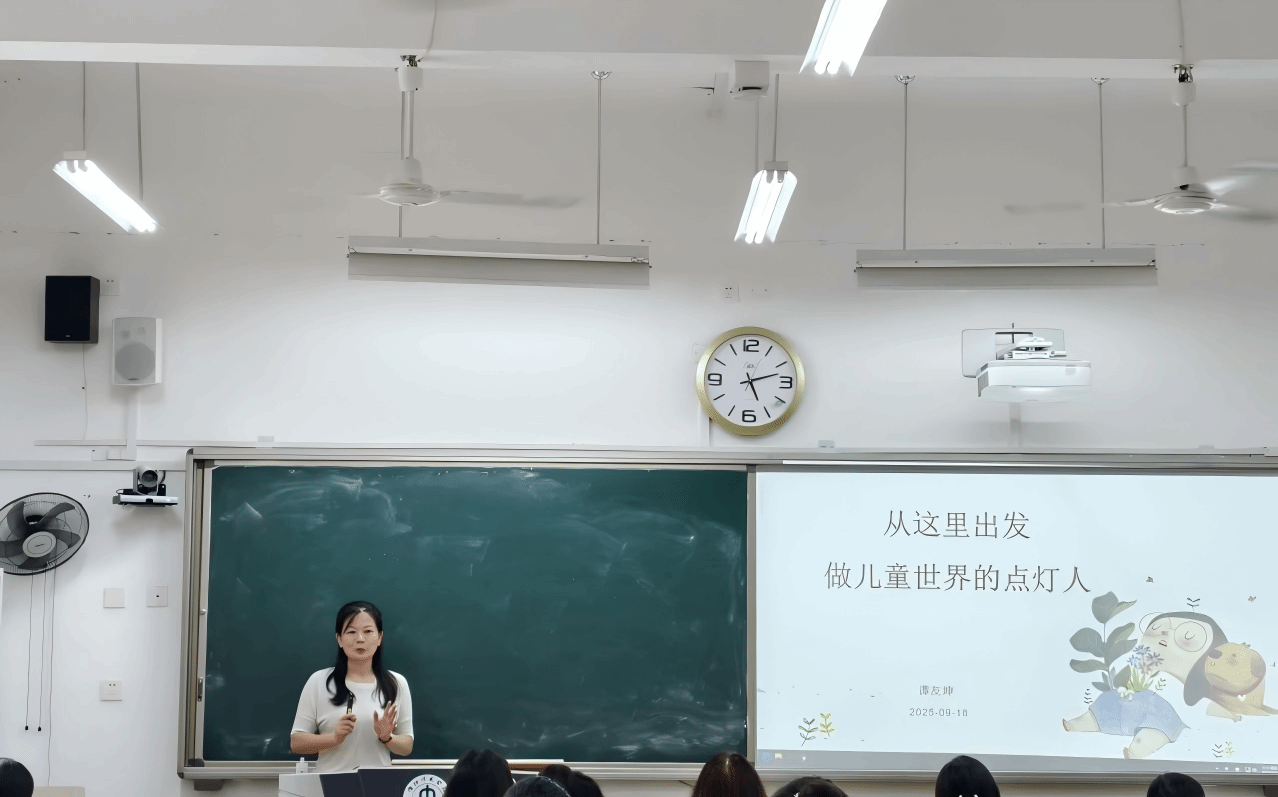 活动中,学前教育教研室主任钱愿秋深入剖析了专业内涵与优势,涵盖趣味课程、实践平台、政策支持等方面,亦系统梳理了学前师范生应具备的专业能力架构,并借助优秀校友典型案例,有效激发了新生的专业抱负与教育热忱。校友郭琪和乔钢通过线上方式,详尽分享了各自的就业前景展望及专业成长的心路历程。随后,来自2023级5班的刘玲同学作为高年级代表,以自身的成长经历为引,激励新生奋勇前行。活动尾声,谭友坤教授以《从这里出发——做儿童世界的点灯人》为主题,着重阐述了学前教育工作者在人口结构转型时期所肩负的使命,勉励大家坚定理想信念、筑牢专业根基、恪守师德规范。