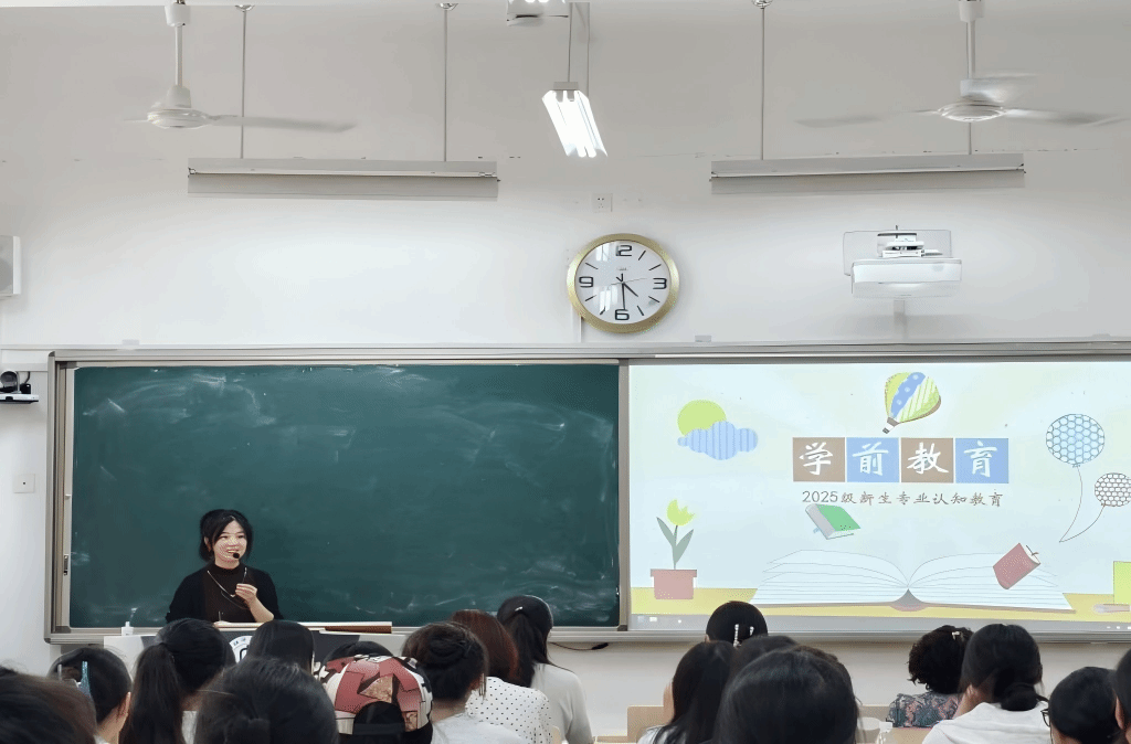 为助力2025级学前教育专业新生明晰发展方向,激发专业学习兴趣,学前教育教研室于2025年9月18日下午在明德楼B115开展了新生入学专业认知教育活动。教育科学学院党委副书记、副院长(主持工作)兼学前教育专业负责人谭友坤教授、学前教育教研室全体教师及学前教育专业2025级新生参与了此次活动。